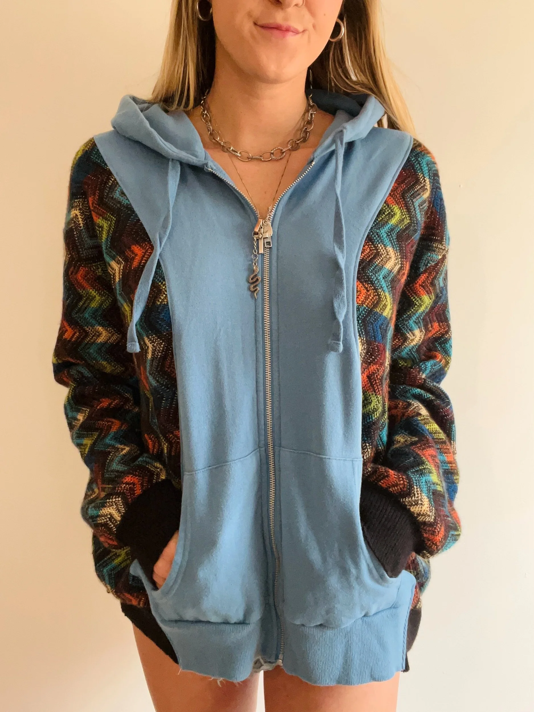 Made from a pre-loved sweater and zip up (: