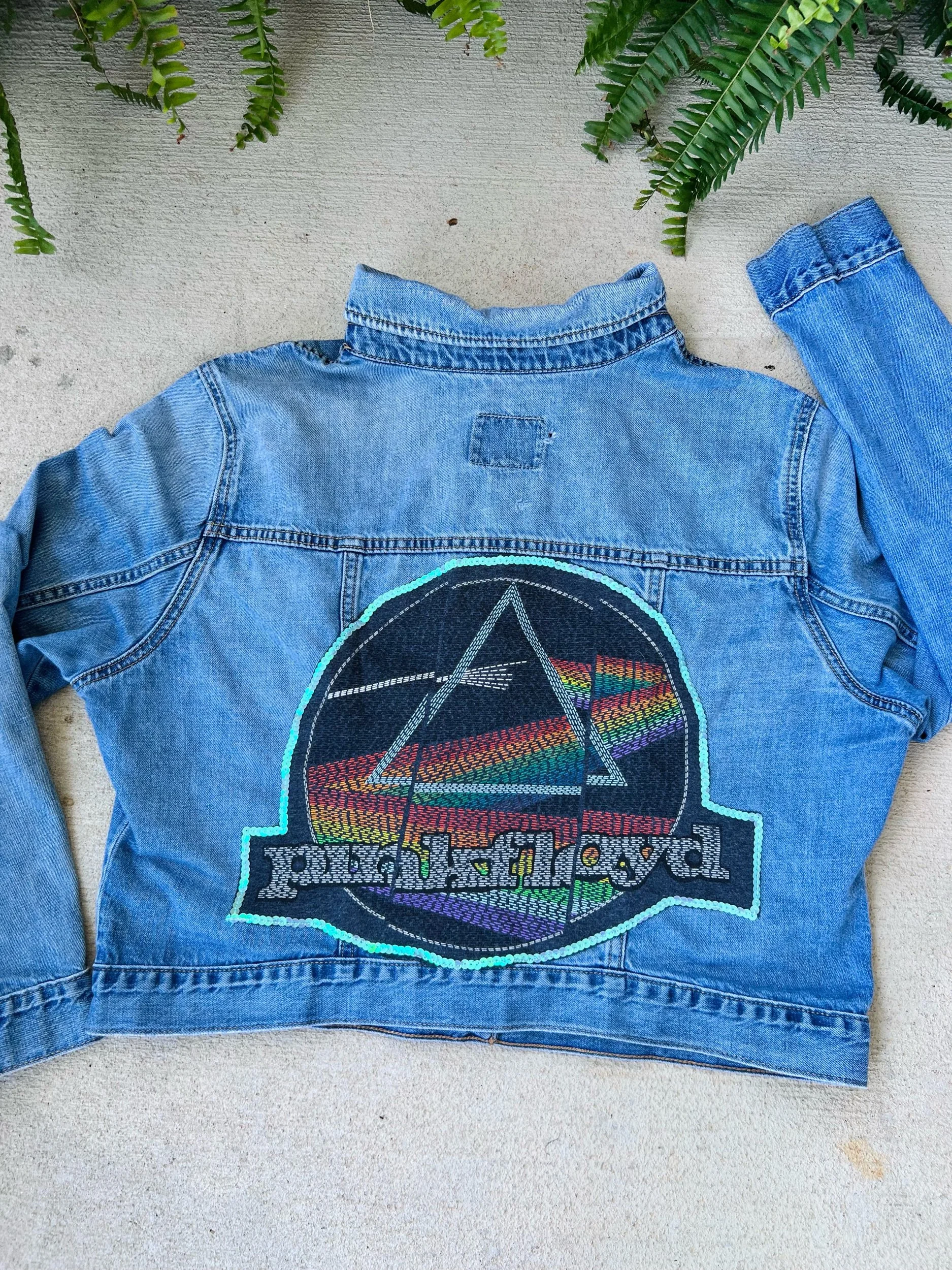 This one-of-a-kind Pink Floyd denim jacket is a whole vibe—crafted from a pre-loved tee + reworked denim and brought back to life as a bold, wearable statement!